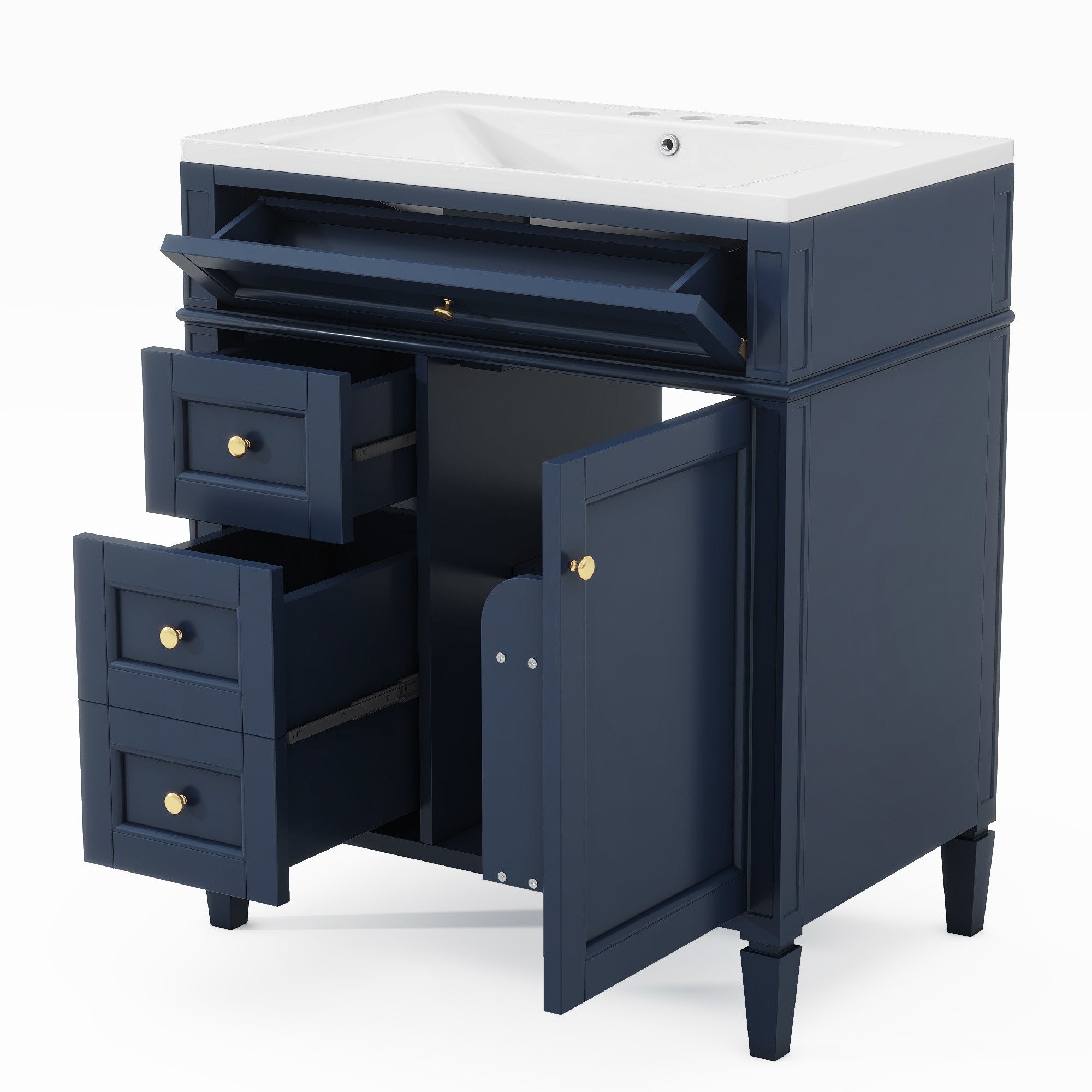 30'' Bathroom Vanity with Top Sink, Modern Bathroom Storage Cabinet with 2 Drawers and a Tip-out Drawer, Single Sink Bathroom Vanity