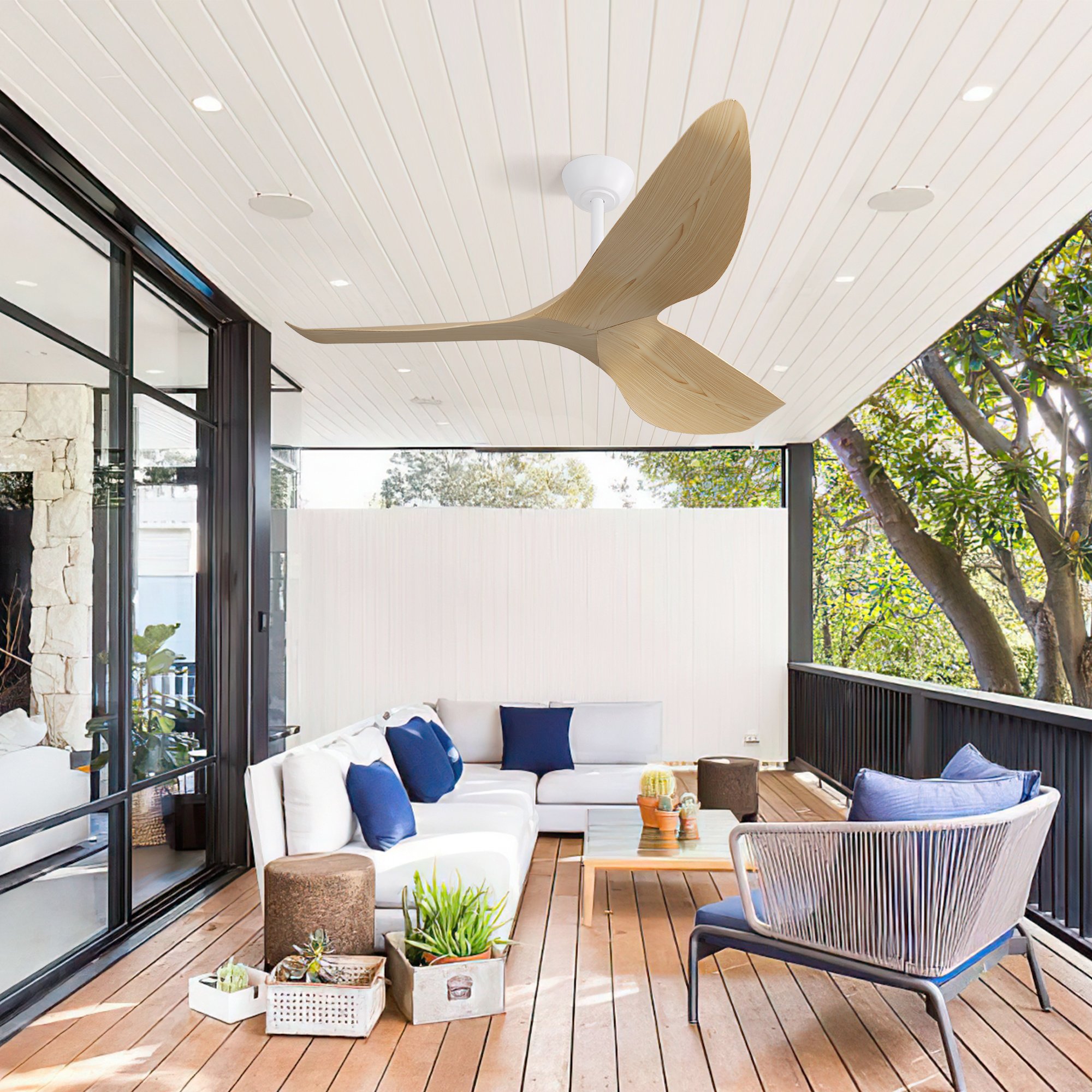 Indoor&Outdoor Ceiling FanDC ceiling fan is 50% more energy-saving than traditional AC motor ceiling fan, the noise level is less than 35 dB, and generally can be used for more than 15 years. Suitable for farmhouse/ patio/ bedroom/ living room/ kitchen/ covered outdoor.