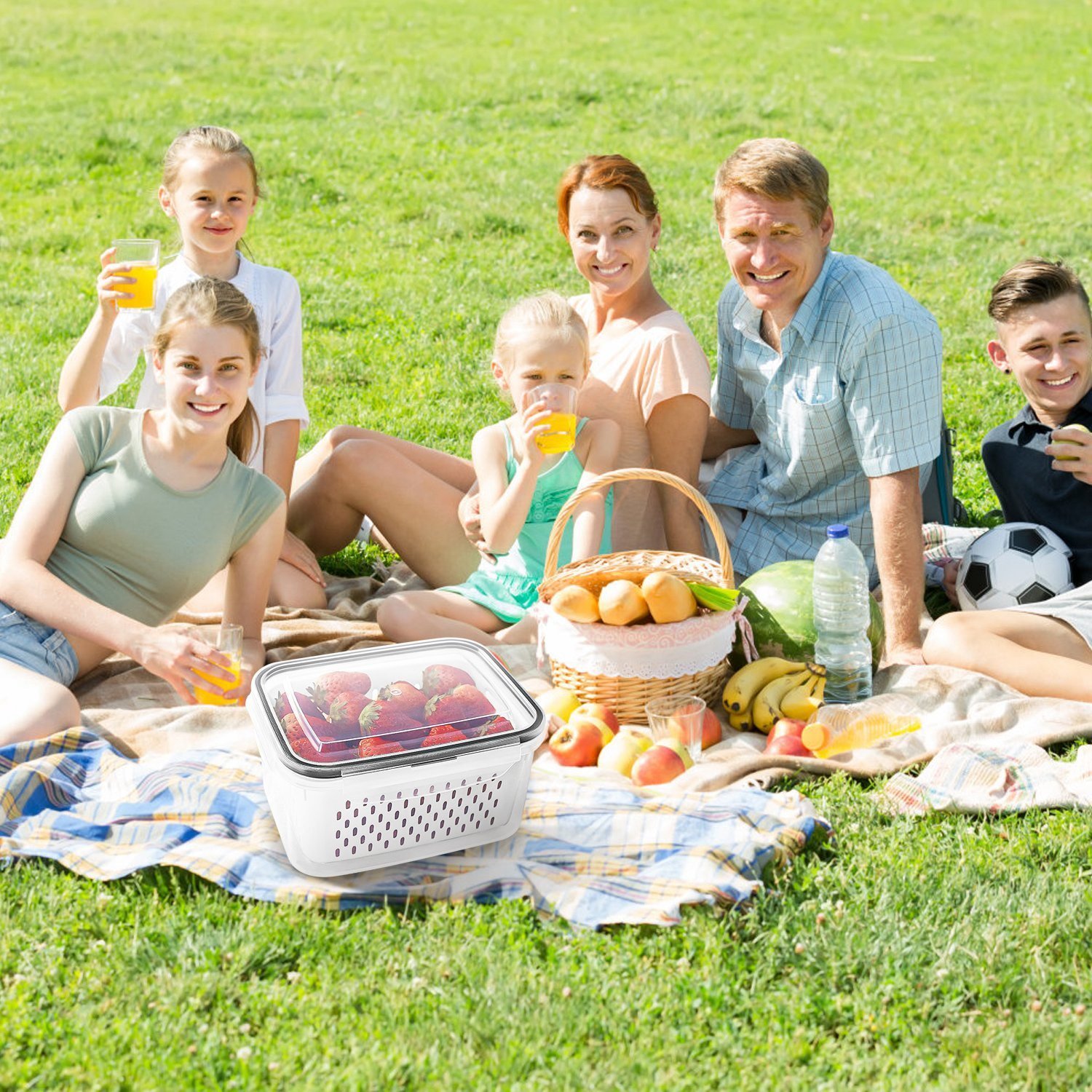 2.The lid of fruit storage case is equipped with leak-proof silicone seal and buckle, effectively prevent the dust and bacteria.