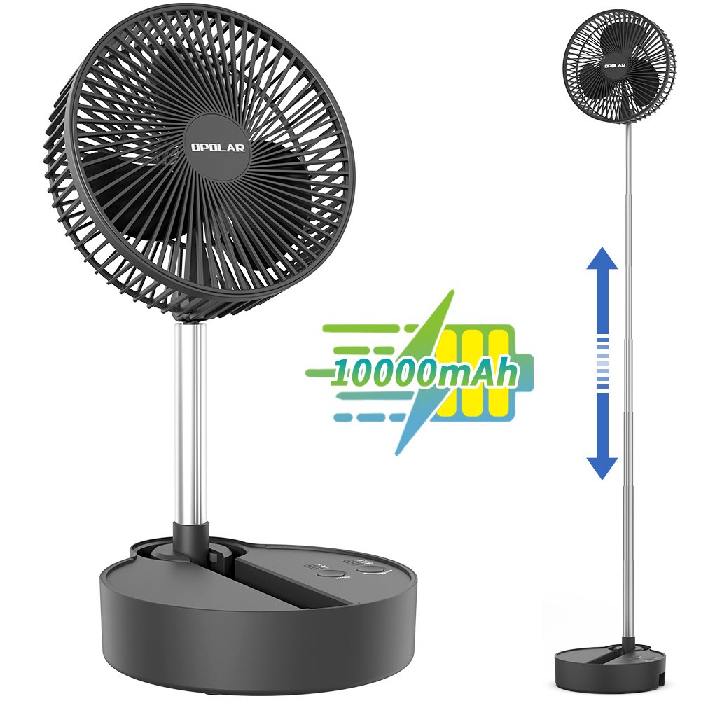 Unbelievable: This portable fan has adjustable height; foldable; oscillating; and fast charge functions. Adjustable Height from 14.2 inch to 3.3ft; portable and compact; easy to carry.