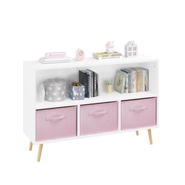 Home > Kids bookcase with Collapsible Fabric Drawers, Children's Book Display, Toy Storage Cabinet Organizer, White+Pink