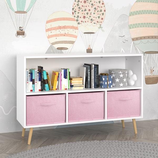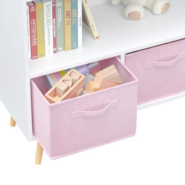Kids bookcase with Collapsible Fabric Drawers, Children's Book Display, Toy Storage Cabinet Organizer, White+Pink