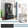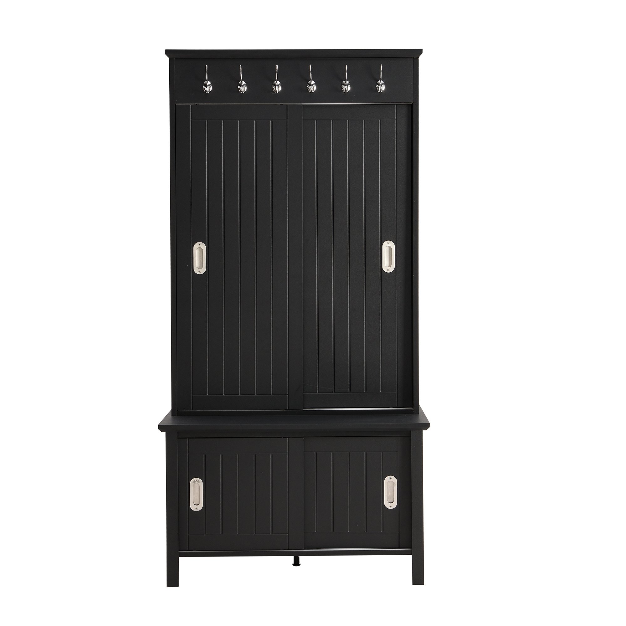 Home > ON-TREND Multifunctional Hall Tree with Sliding Doors, Wooden Hallway Shoe Cabinet with Storage Bench and Shelves, Mudroom Coat Storage with Hanging H