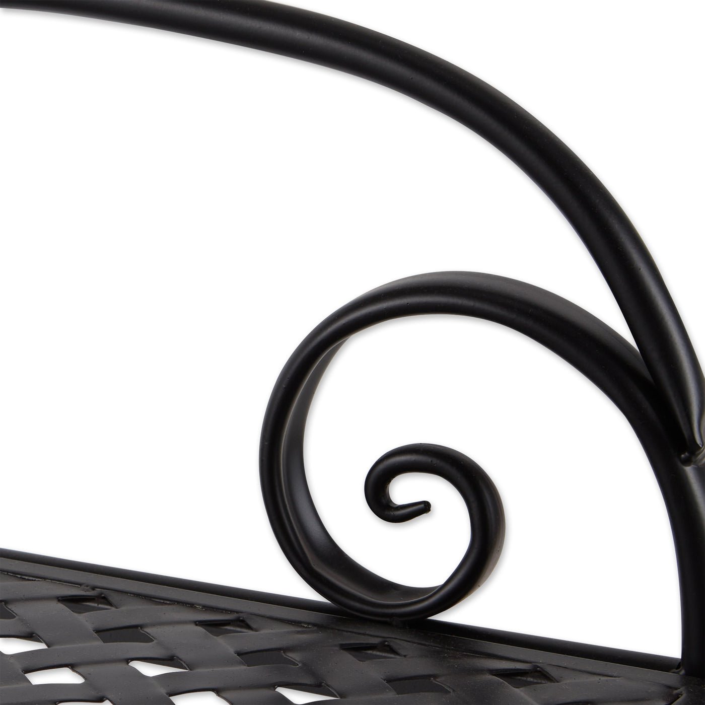 • Enjoy this decorative iron bench detailed with hanging apples. Place in a shady spot under a tree or along a garden path for a place to relax and enjoy nature. Sit side by side with a friend, sipping tea on a beautiful summer day. This bench is perfect if your outdoor entertaining space requires additional seating, place on a deck or patio and add cushions if needed.