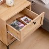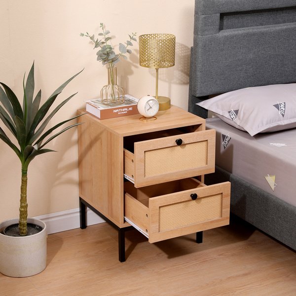 Rattan Nightstand Set of 2,Bedside Table with 2 Natural Rattan Drawers and Metal Legs