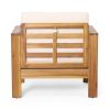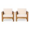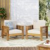 ( Set of 2) Outdoor Acacia Wood Club Chairs with Cushions, Teak+Beige, 27.75"D x 32"W x 27.75"H