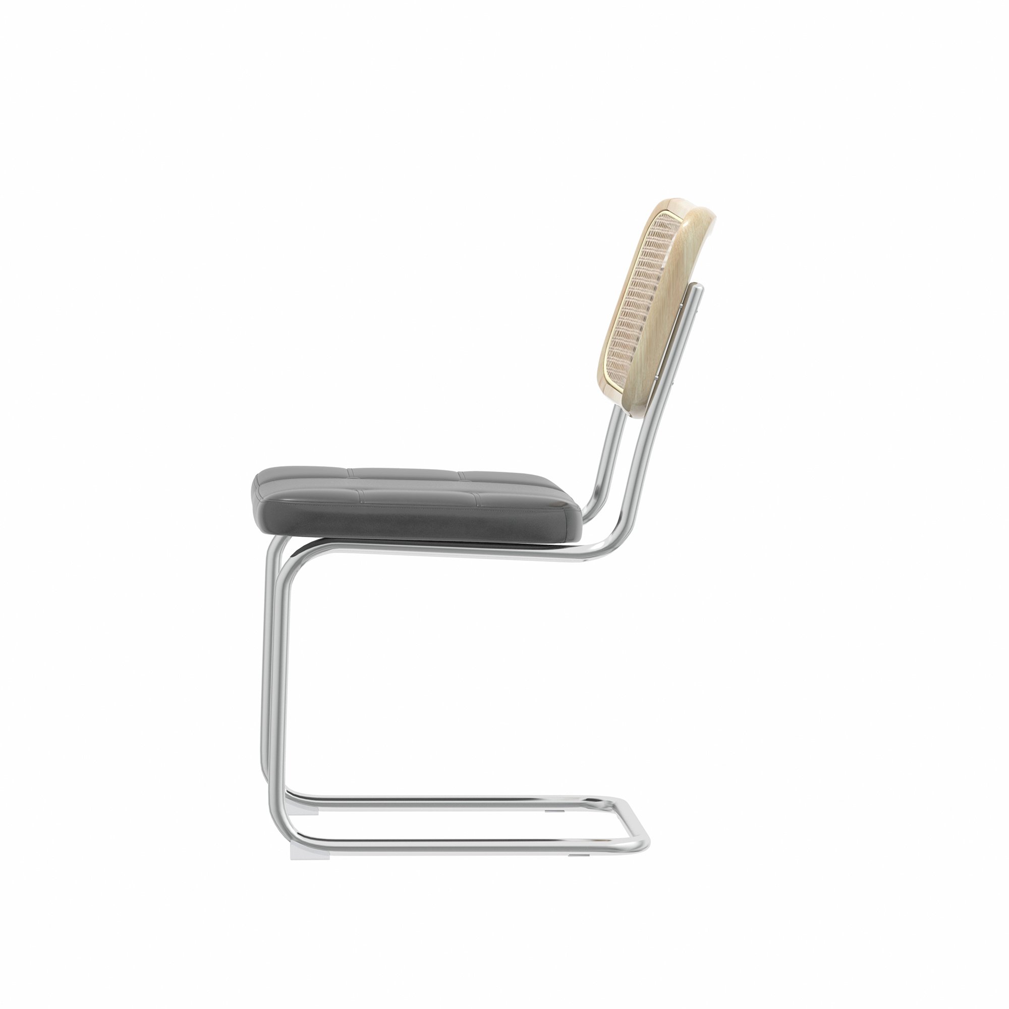 Home > Set of 4, Leather Dining Chair with High-Density Sponge, Rattan Chair for Dining room, Living room, Bedroom, Gray