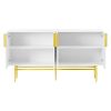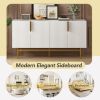 TREXM Modern Elegant 4-door Sideboard Gold Metal Handle Buffet Cabinet for Dining Room, Living Room, Bedroom, Hallway (White)
