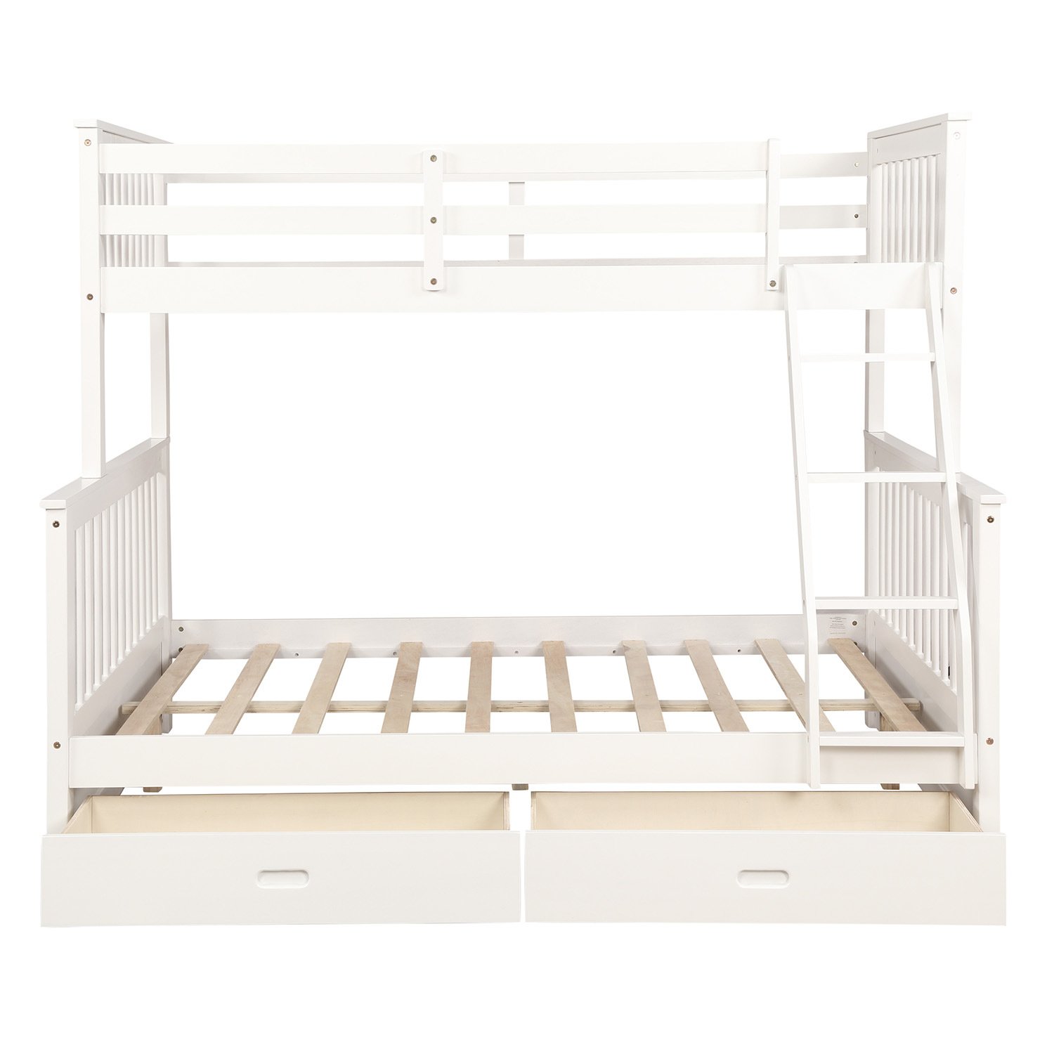 Twin Over Full Bunk Bed with Storage Drawers, Wooden Bunk Bed with Ladder and Safety Guard Rails –White